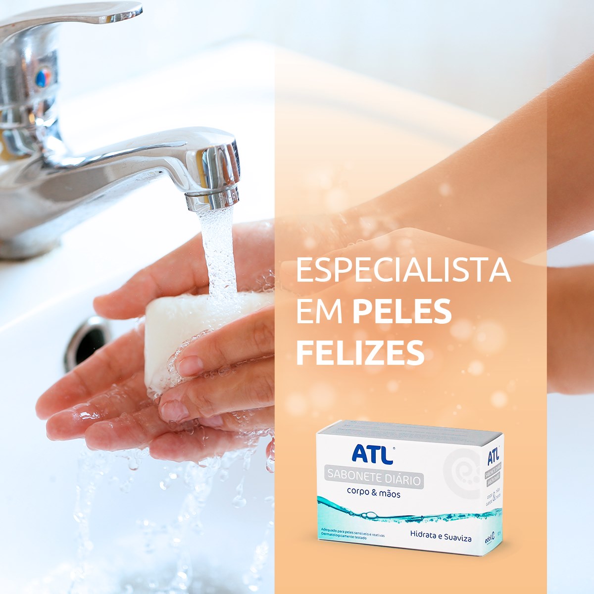 ATL® Sabonete é um cuidado de limpeza diária do corpo e mãos com pele seca e desidratada.