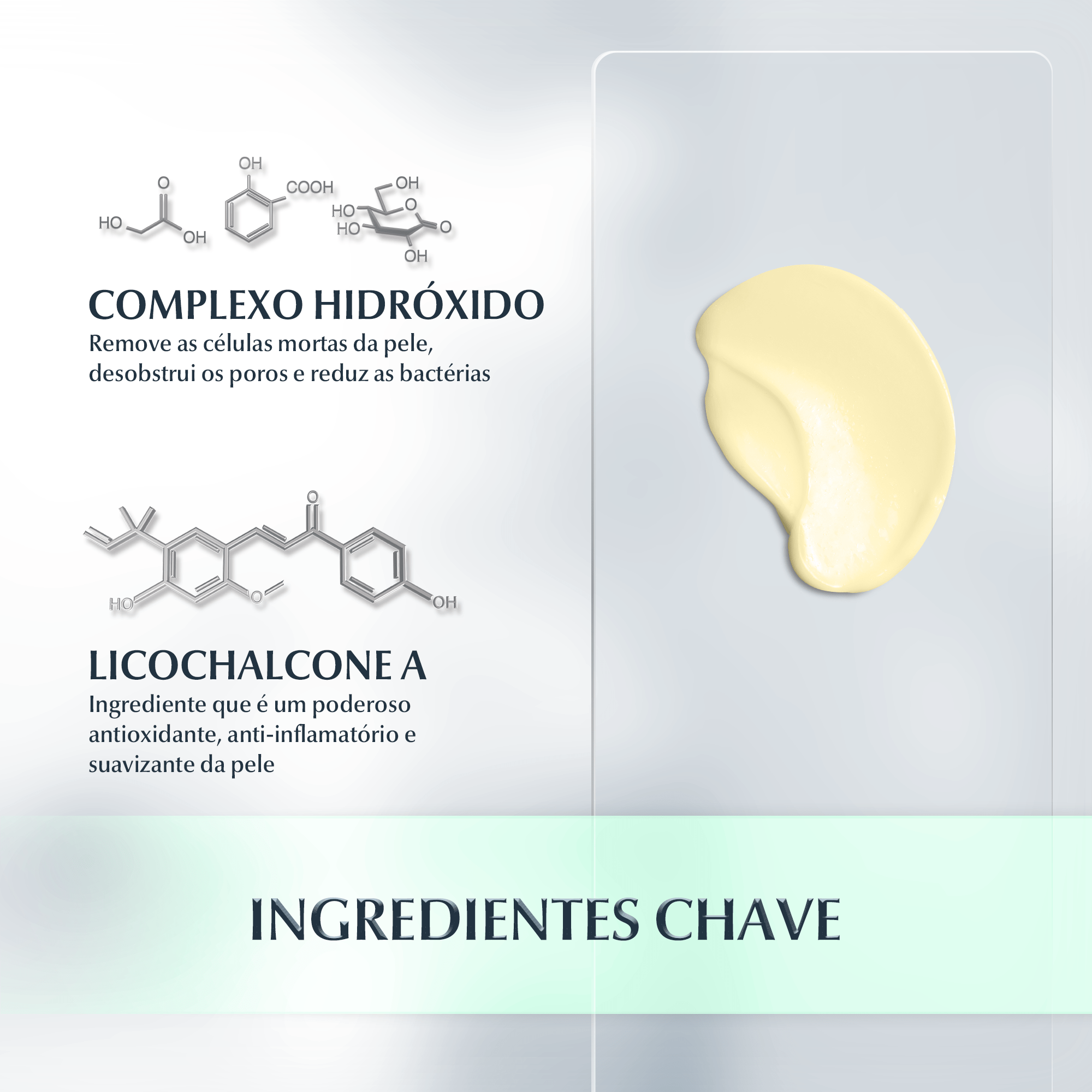 Reduz visivelmente as imperfeições e previne o seu reaparecimento, desobstrui os poros e promove a renovação da pele (efeito peeling). Ao mesmo tempo proporciona uma pele mais lisa e suave ao longo do tempo.