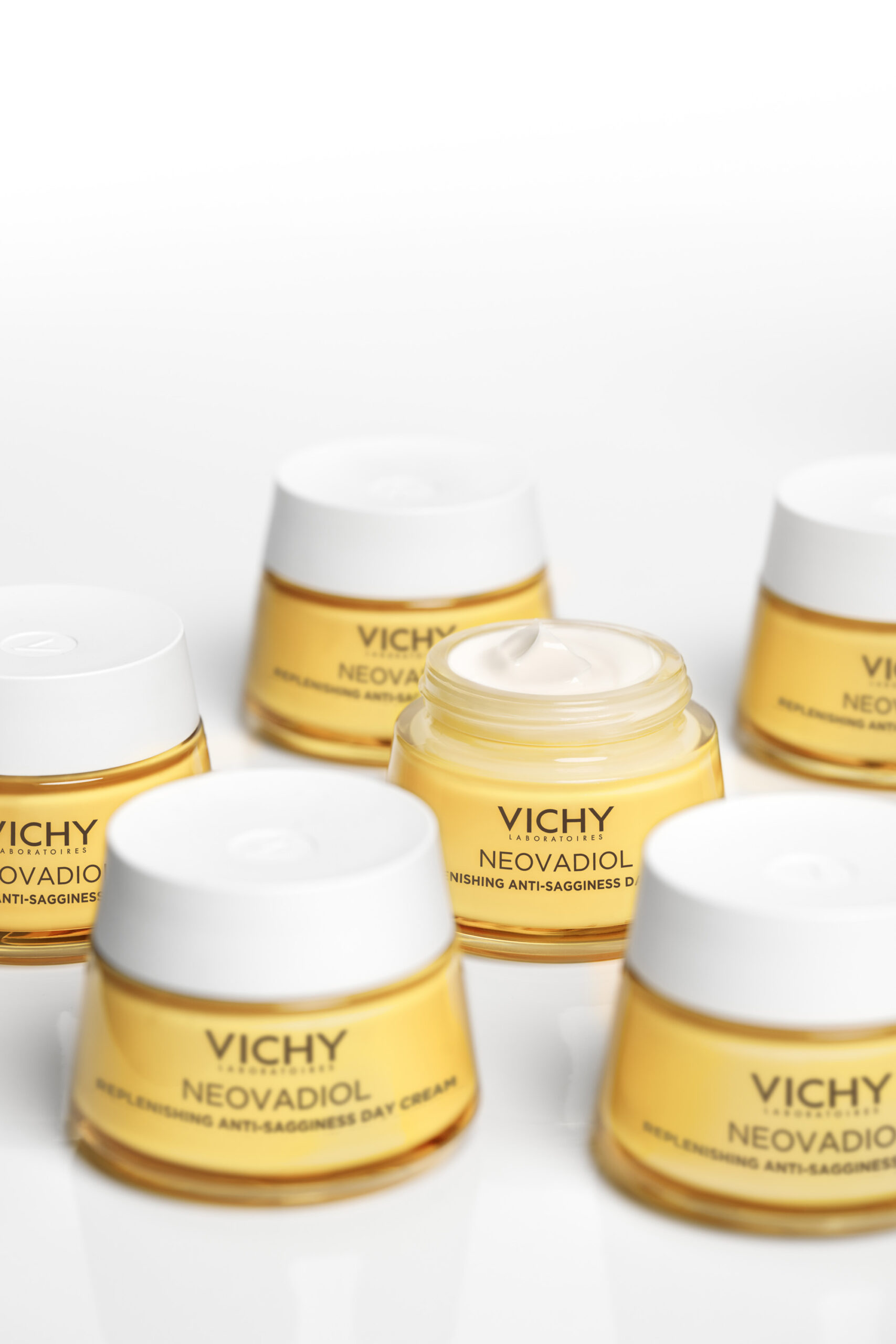 Vichy Neovadiol Pós-Menopausa Dia reativa visivelmente os mecanismos da pele: flacidez, densidade, rugas. Indicado como cuidado antienvelhecimento após a menopausa.